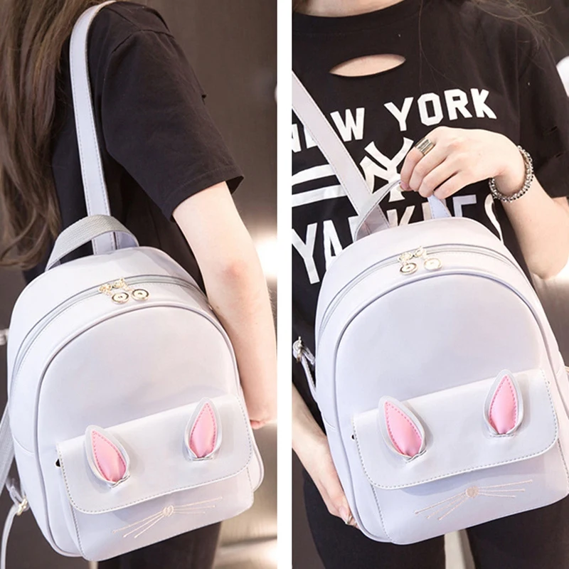 Pu Backpack Cute Cat Backpack Daypack Portable Shoulder Bag