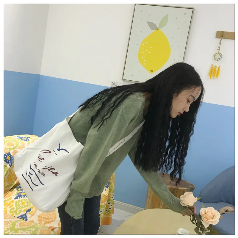 HIGH QUALITY YILE Cotton Canvas Eco Cross Body Messenger Bag Print Seagull Sea Sunshine CY088