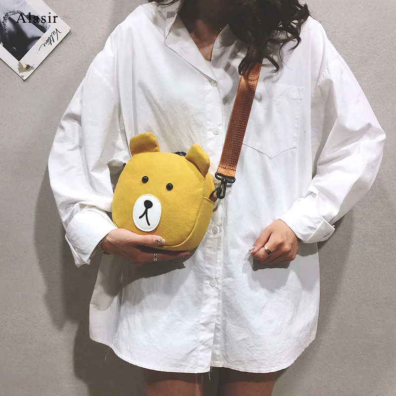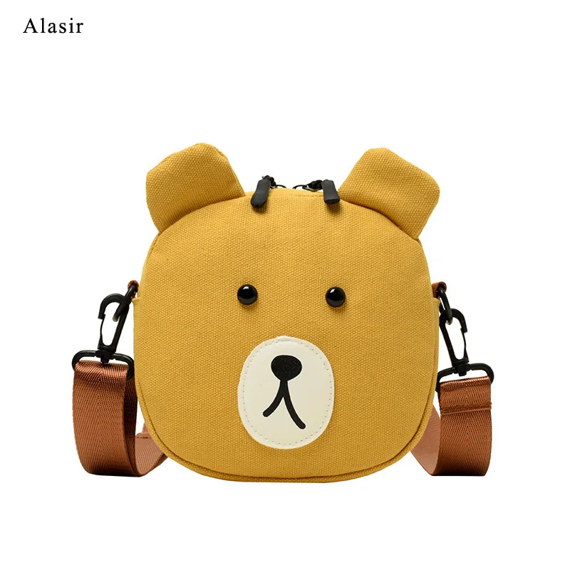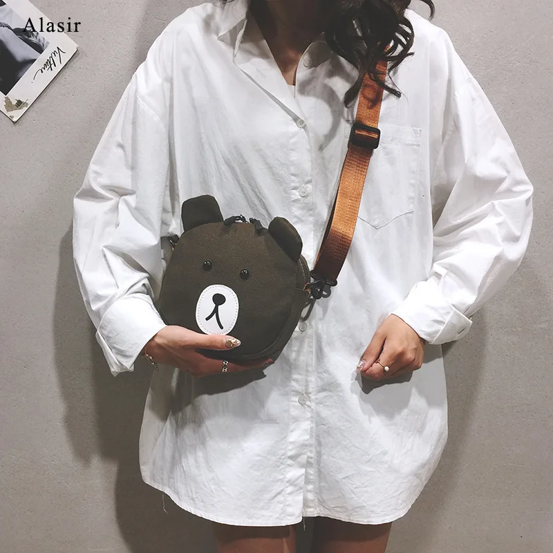 REVIEW TOP SELLER Alasir Cute Bear Student Canvas Bag Animal Circular Crossbody Bags for Women Bear Canvas Shoulder B