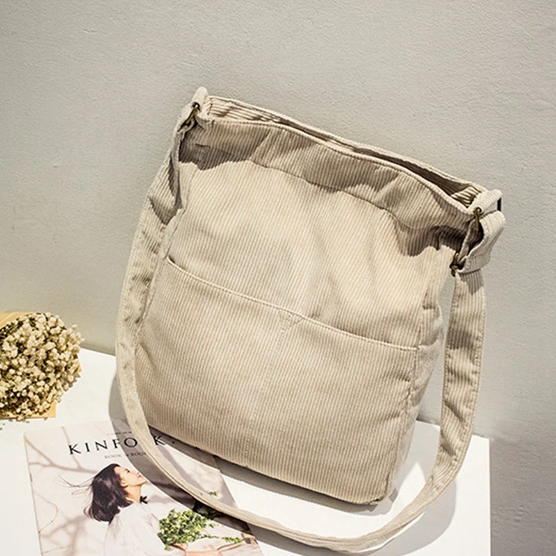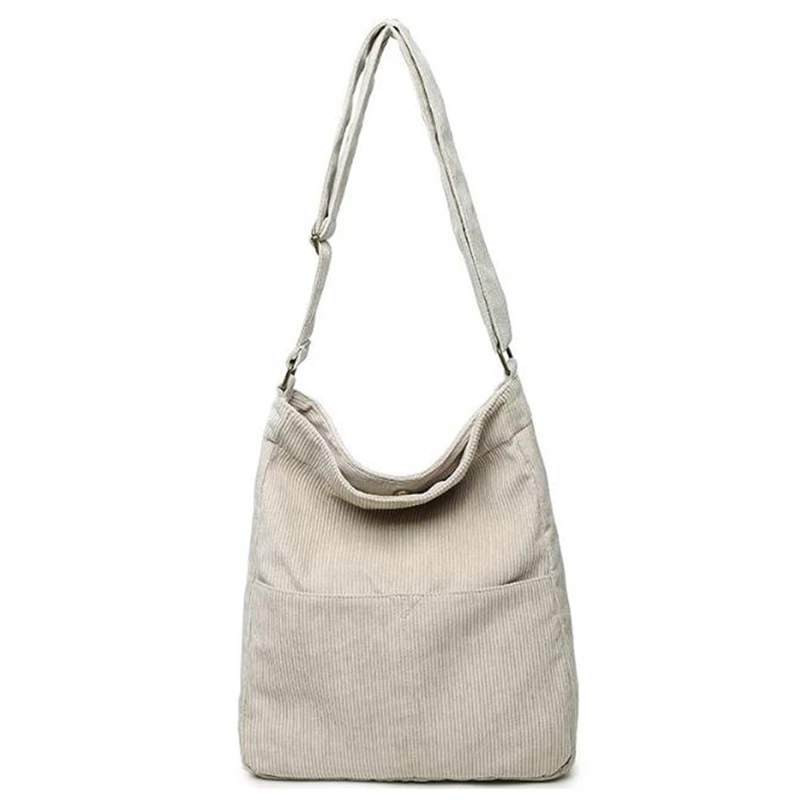 Review Top Fashion Corduroy Shoulder Bag Simple Retro Canvas Messenger Bag Solid Soft Cloth Handbag