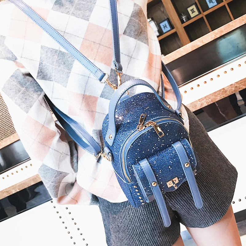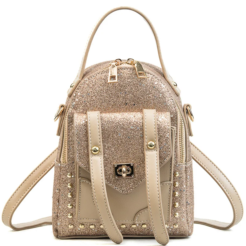 LXTAZG New Fashion Women Gold sequins Backpack girls Cool rivet Backpack small School Bag Travel Ba