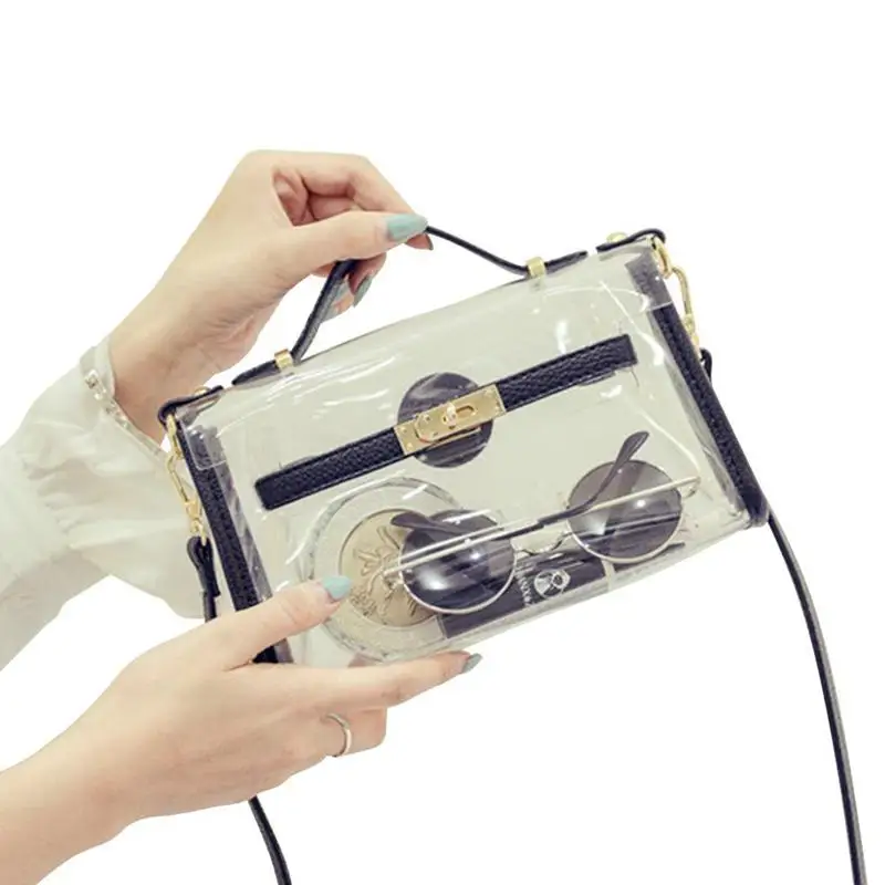 HOT SALE Clear Crossbody Messenger Shoulder Bag Purse For Women Adjustable Strap Black