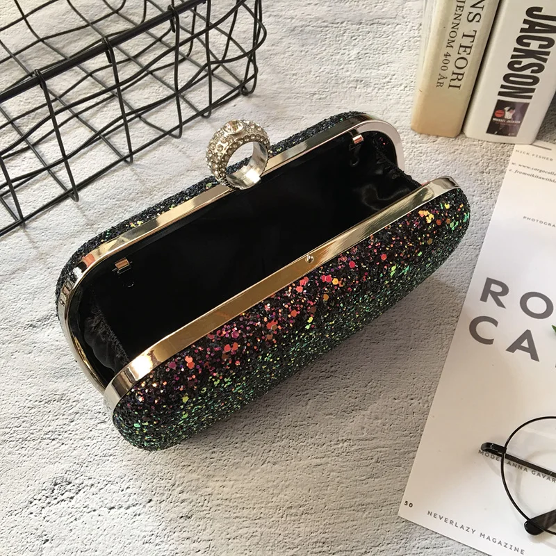 TOP Women Elegant Glitter Lock Clasp Purse Chain Handbag Evening Wedding Prom Banquet Party Handbag Sho