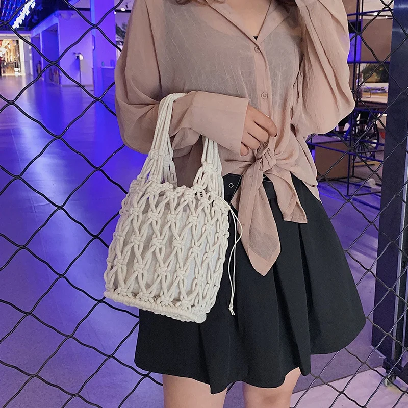Openwork Woven Women's Bag Summer New Fashion Shoulder Bag Wild Simple Beach Bag Woven Handbag